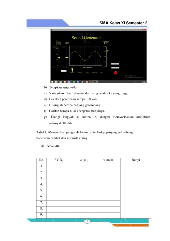 g) Ulangi langkah a) sampai b) dengan memvariasikan amplitude