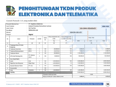 PENGHITUNGAN TKDN PRODUK ELEKTRONIKA DAN TELEMATIKA KDN + KLN (4) x (100%-(5))x(6)x(7) (4)X (5) x (6) x (7) Digital 55 © Zakariya Arif F. l PPIMTE – BPPT l Pelatihan Dasar CPNS 2021 TKDN Produk Elektronika dan Telematika 55