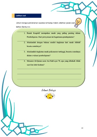 Untuk menguji pemahaman saudara terhadap materi, silahkan jawab soal