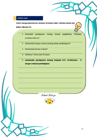 Untuk menguji pemahaman saudara terhadap materi, ailahkan jawab soal