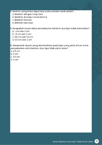 8. Belahan yang biasa digunakan pada pakaian anak adalah ...