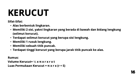 • Terdapat selimut kerucut yang berupa sisi lengkung.