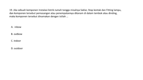 19. Jika sebuah komponen Instalasi listrik rumah tangga misalnya Saklar, Stop kontak dan Fitting lampu,