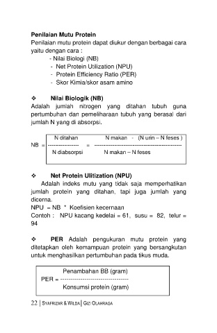 Contoh : NPU kacang kedelai = 61, susu = 82, telur =