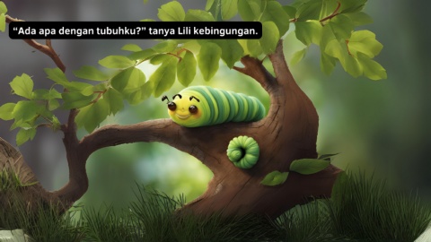 Page 3 - Lili merasa tubuhnya semakin berat dan ia pun berhenti makan. Ia terkejut dan sedikit takut, tapi rasa ingin tahunya lebih besar daripada ketakutannya. Lili merasakan perubahan dalam dirinya dan memutuskan untuk mencari tempat yang aman ... - Presentation