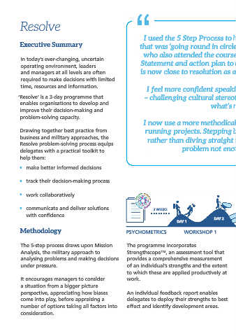 ‘Resolve’ is a 3-day programme that – challenging cultural stereotypes and being clear about