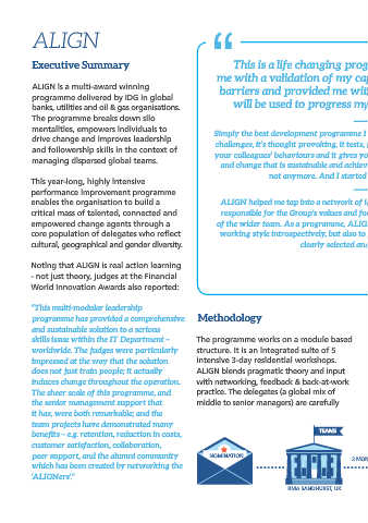 enables the organisation to build a ALIGN helped me tap into a network of individuals who clearly felt passionately