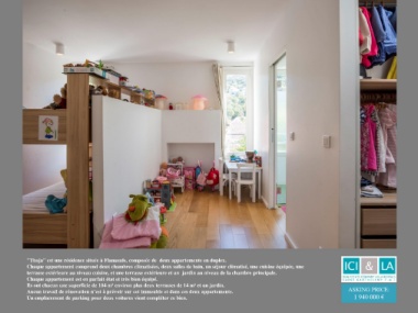 terrasse extérieure au niveau cuisine, et une terrasse extérieure et un jardin au niveau de la chambre principale. 1 940 000 €