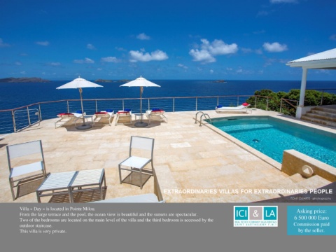 Two of the bedrooms are located on the main level of the villa and the third bedroom is accessed by the 6 500 000 Euro