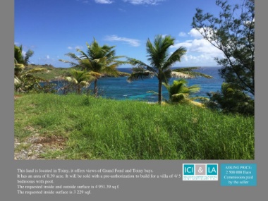 This land is located in Toiny, it offers views of Grand Fond and Toiny bays. ASKING PRICE: