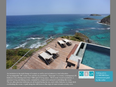 An incomparable 180° ocean view and the sea just below. "Seascape" is a roomy contemporary 06 12 900 000 Euro