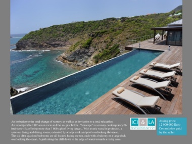 An incomparable 180° ocean view and the sea just below. "Seascape" is a roomy contemporary 06 12 900 000 Euro
