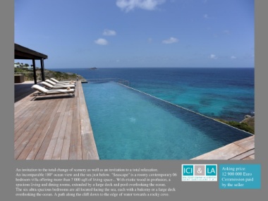 An incomparable 180° ocean view and the sea just below. "Seascape" is a roomy contemporary 06 12 900 000 Euro