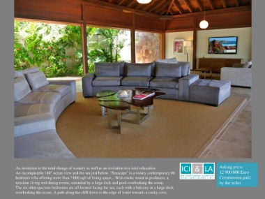 An incomparable 180° ocean view and the sea just below. "Seascape" is a roomy contemporary 06 12 900 000 Euro