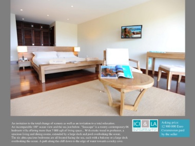 An incomparable 180° ocean view and the sea just below. "Seascape" is a roomy contemporary 06 12 900 000 Euro
