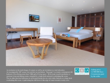 An incomparable 180° ocean view and the sea just below. "Seascape" is a roomy contemporary 06 12 900 000 Euro