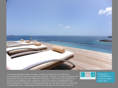 An incomparable 180° ocean view and the sea just below. "Seascape" is a roomy contemporary 06 12 900 000 Euro