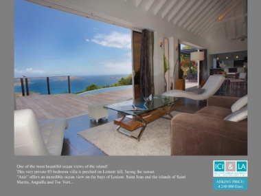 This very private 03 bedroom villa is perched on Lorient hill, facing the sunset.                    4 240 000 Euro