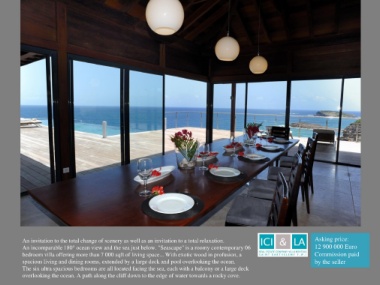 An incomparable 180° ocean view and the sea just below. "Seascape" is a roomy contemporary 06 12 900 000 Euro