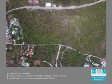 Ce terrain est situé à Saint Jean. PRIX DEMANDE: Son accès se fait par la route allant de Saint Jean Carénage à Morne Tourterelle. Il est entièrement en zone verte et a une superficie de 8 154 m². 800 000 Euro