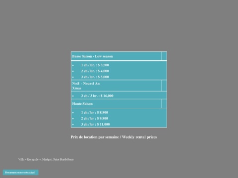 Prix de location par semaine / Weekly rental prices
