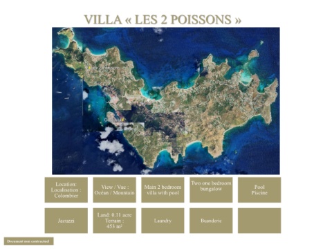 VILLA « LES 2 POISSONS » Location: Two one bedroom Pool View / Vue : Localisation : Océan / Mountain Main 2 bedroom bungalow Piscine villa with pool Colombier Land: 0.11 acre Jacuzzi Terrain : Laundry Buanderie 453 m² Document non contractuel