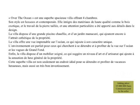Enfin, la villa dispose d’un mobilier soigné, ce qui suggère un niveau d’art et d’artisanat qui ajoute à
