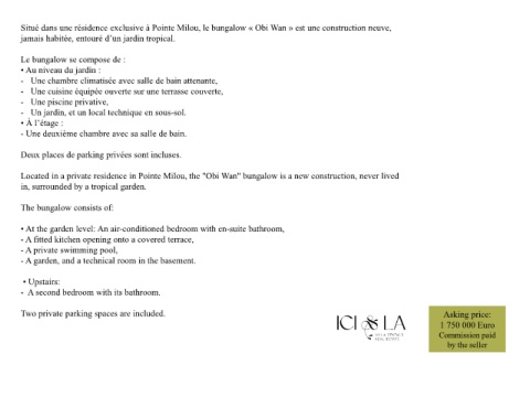 Situé dans une résidence exclusive à Pointe Milou, le bungalow « Obi Wan » est une construction neuve,