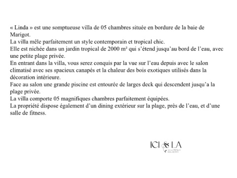 « Linda » est une somptueuse villa de 05 chambres située en bordure de la baie de