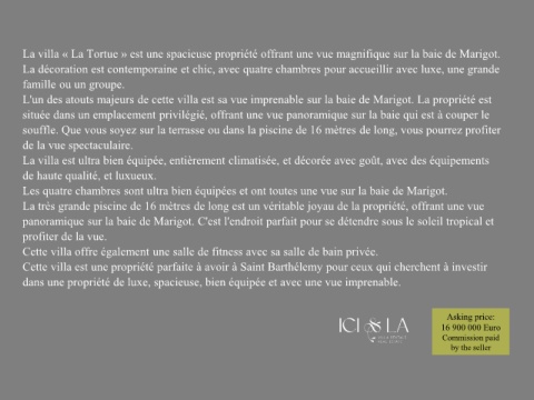 L'un des atouts majeurs de cette villa est sa vue imprenable sur la baie de Marigot. La propriété est