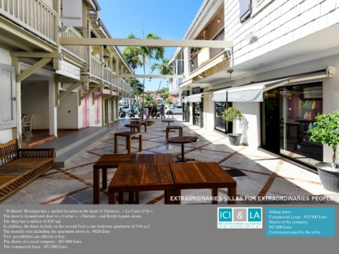 “B-Shorts" Boutique has a  perfect location in the heart of Gustavia:  « Le Carré d’Or ».                       Asking price: