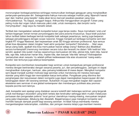 yang patut diapresiasi, didukung dan diwadahi. Bagaimanapun juga mengikuti kompetisi seni