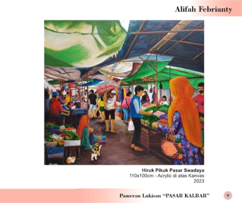 Alifah Febrianty Hiruk Pikuk Pasar Swadaya 110x100cm - Acrylic di atas Kanvas 2023 Pameran Lukisan “PASAR KALBAR” 9