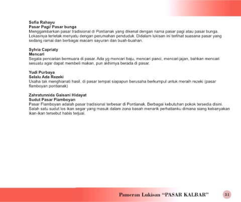 Menggambarkan pasar tradisional di Pontianak yang dikenal dengan nama pasar pagi atau pasar bunga.