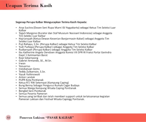 Segenap Perupa Kalbar Mengucapkan Terima Kasih Kepada: