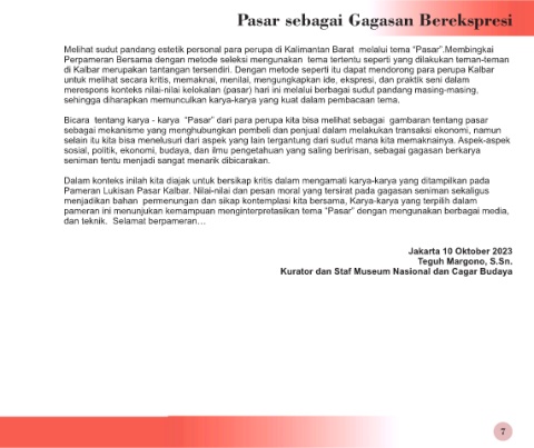 pameran ini menunjukan kemampuan menginterpretasikan tema “Pasar” dengan mengunakan berbagai media,