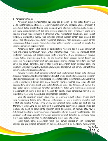 gangguan saraf hingga penyakit kronis. Jadi, pencemaran tanah bukanlah isu kecil yang hanya