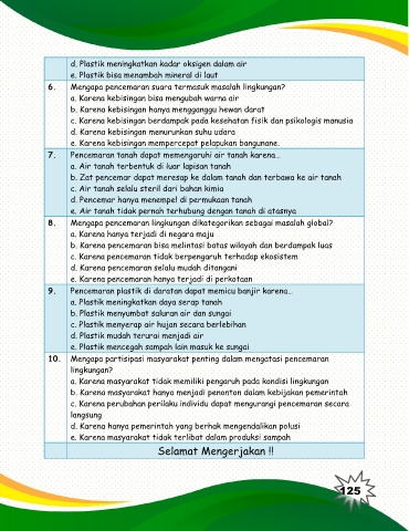 d. Plastik meningkatkan kadar oksigen dalam air