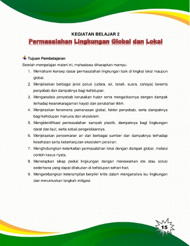 1. Memahami konsep dasar permasalahan lingkungan baik di tingkat lokal maupun