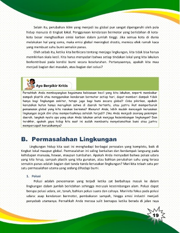 sampah plastik atau menggunakan kendaraan bermotor setiap hari, dapat memberi dampak tidak