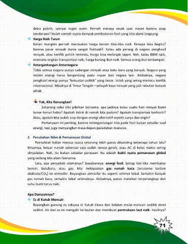 Sekarang coba kita pikirkan bersama: apa jadinya kalau suatu hari minyak bumi