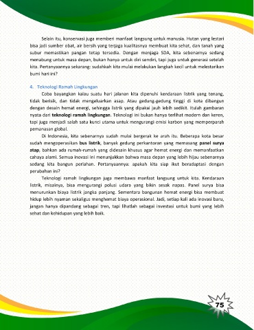 Teknologi ramah lingkungan juga membawa manfaat langsung untuk kita. Kendaraan