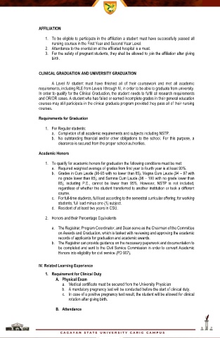 1. To be eligible to participate in the affiliation a student must have successfully passed all