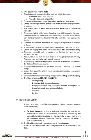 g. Littering and Loitering in the dorm specially when other students are sleeping or studying