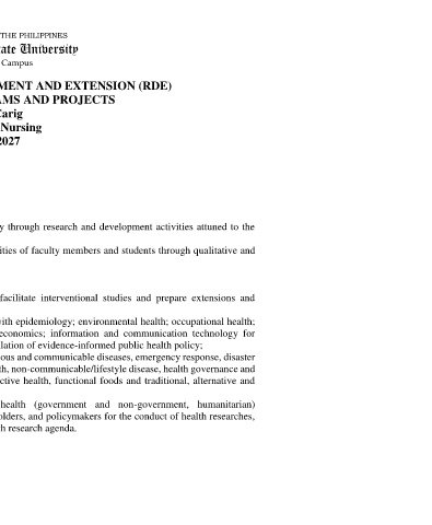 RESEARCH AND DEVELOPMENT AND EXTENSION (RDE)