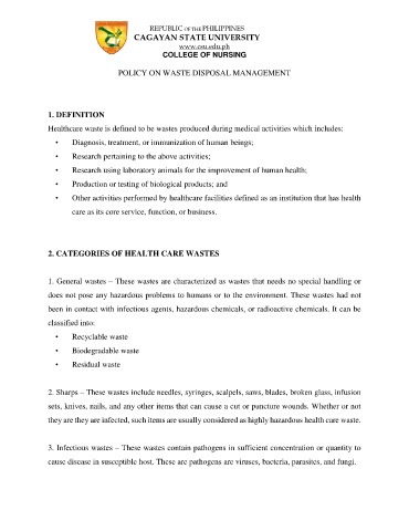 POLICY ON WASTE DISPOSAL MANAGEMENT