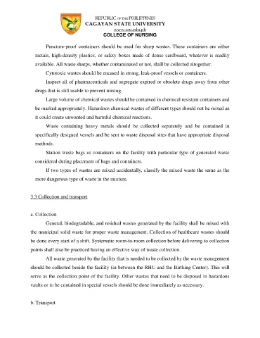 serve as the collection point of the facility. Other wastes that need to be disposed in hazardous