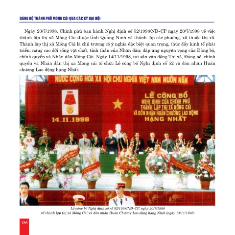 về thành lập thị xã Móng Cái và đón nhận Huân Chương Lao động hạng Nhất (ngày 14/11/1998)