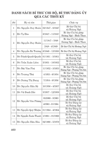 4 Đ/c Nguyễn Bá Trương 6/1949 - 12/1950 Bí thư Chi bộ Hoàng Ngô
