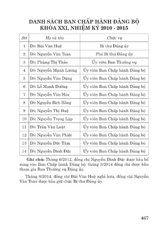 Ghi chú: Tháng 6/2012, đồng chí Nguyễn Đình Đức được bầu bổ